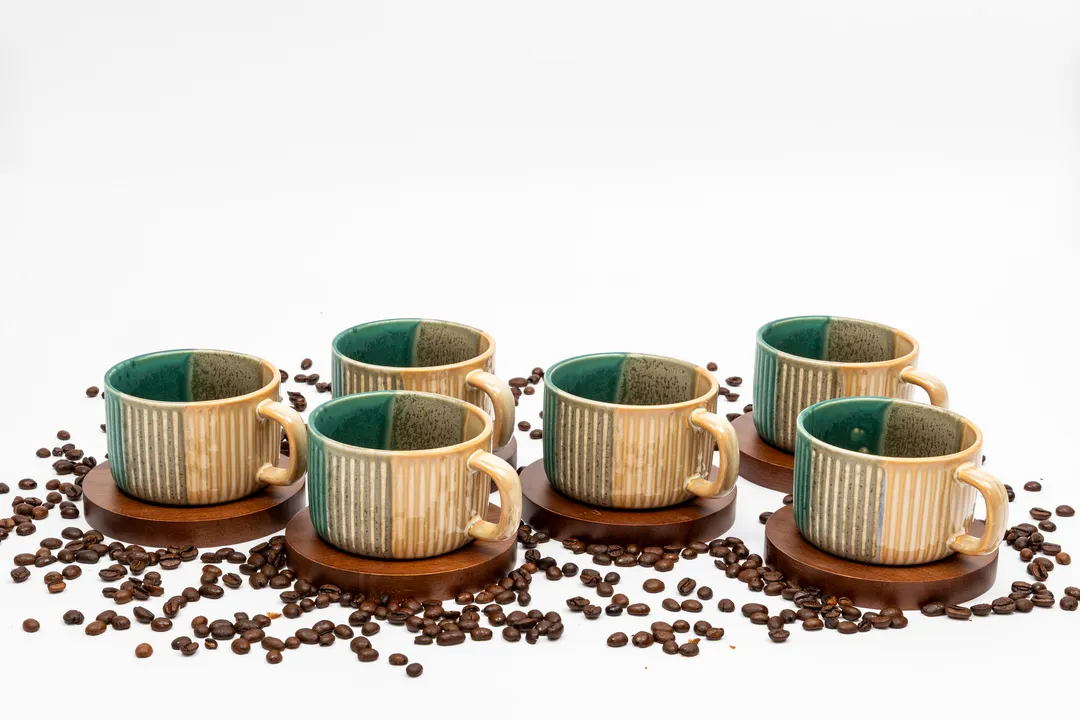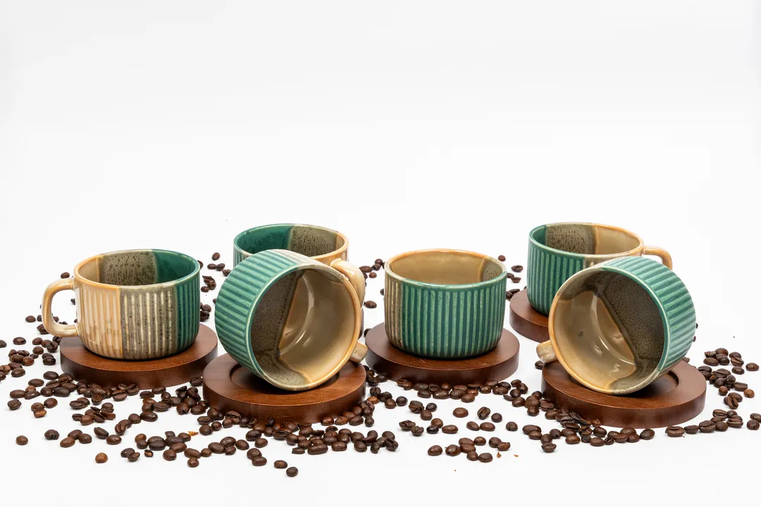 Ove elegantne bele šolje sa podmetačima od bambusa donose savršen spoj stila i funkcionalnosti! Uživajte u: